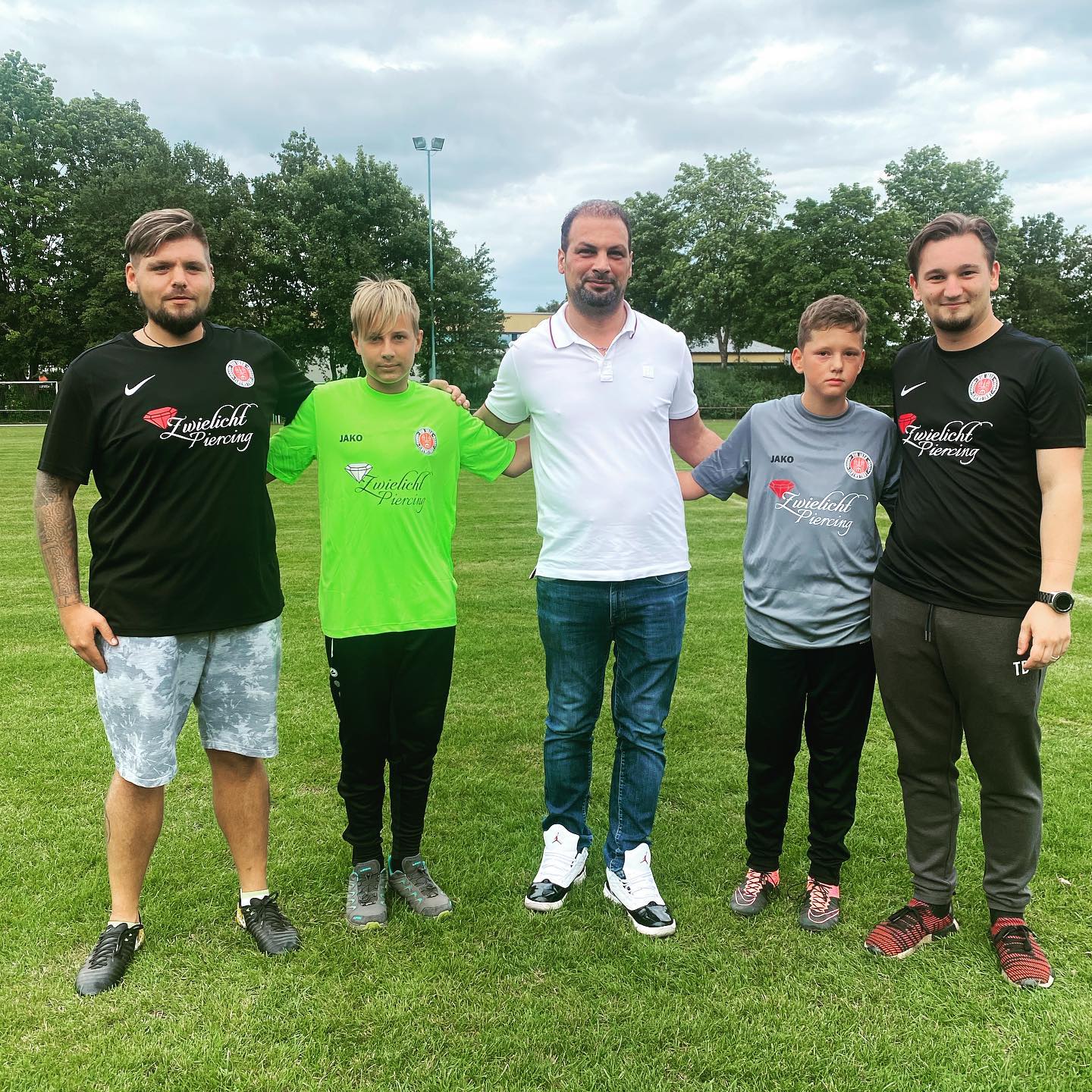 Vor dem gestrigen Auftaktspiel unserer 1. Mannschaft besuchte uns Schlemoun Kücükkaplan von @zwielicht_piercing und überreichte unserem Kapitän Manuel Klein neue Warmmachshirts, die von den Jungs direkt gestern eingeweiht wurden. 🔥